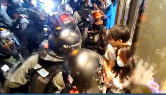 [Breaking] Riot police stormed into restaurant, arrested shop owners and customers inside, claiming there were females dancing inside the restaurant #HongKong #PoliceState pic.twitter.com/uSYmDvYLPd