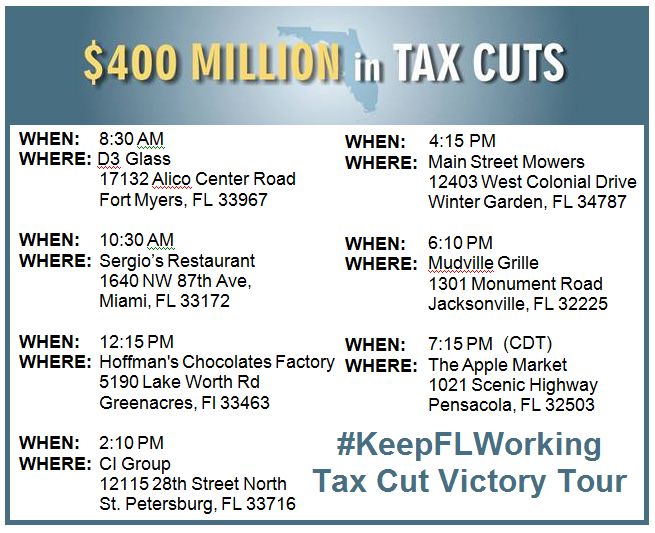 Join us on the #KeepFLWorking Tax Cut Victory Tour today!pic.twitter.com/MVTgsj7S4d