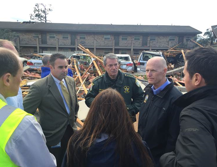 “@FLGovScott: In Pensacola to tour damaged areas and speak with families following last night’s tornado. pic.twitter.com/boT99prE6X”