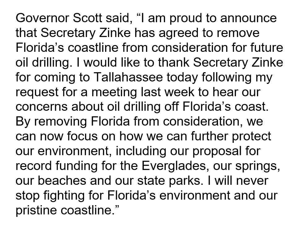 This is clearly a political move for your senate run. Send water to the Everglades, restore Sea grass beds. Also for those saying to drill, it’s a dying resource just as you all are.