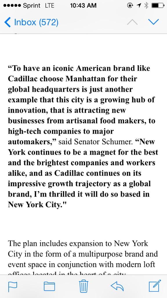 .@SenSchumer is excited about @Cadillac moving to NYCpic.twitter.com/ix6suI6brD