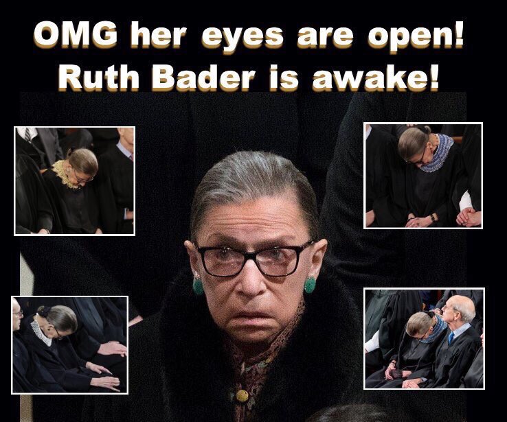 Not awake, just has her eyes open.