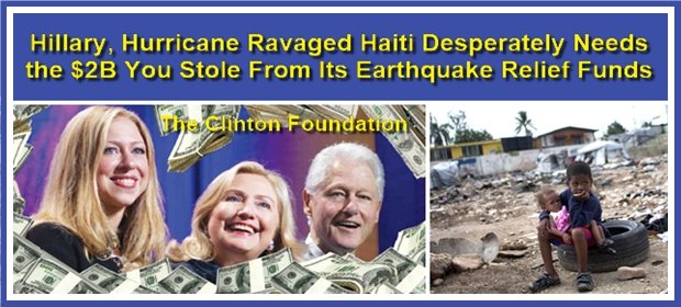 Maybe tell Hillary to give back all the money she took to "help" Haiti then robbed donors & Haitians!