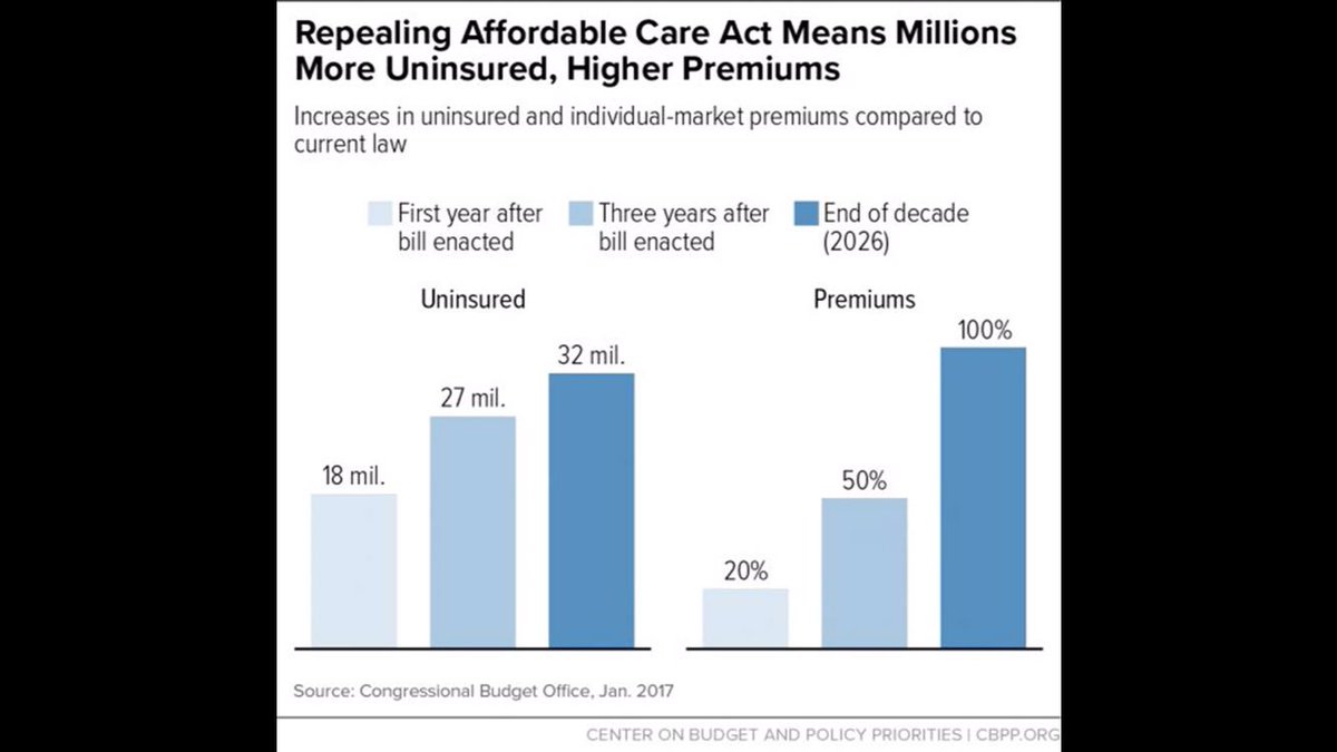 Your party has destroyed health care in this country. Workers pay higher premiums to take care or people who don't want to work. Repeal it
