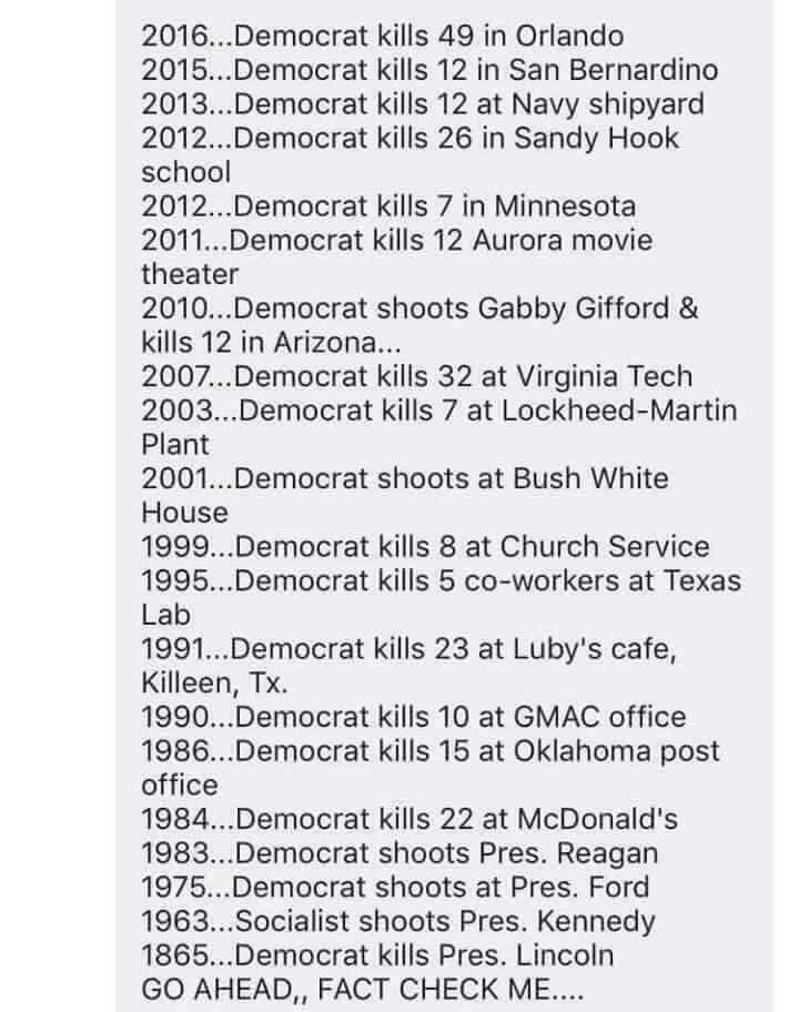I don’t have to, someone else already did:https://www.snopes.com/fact-check/democrat-shooters-list/ …