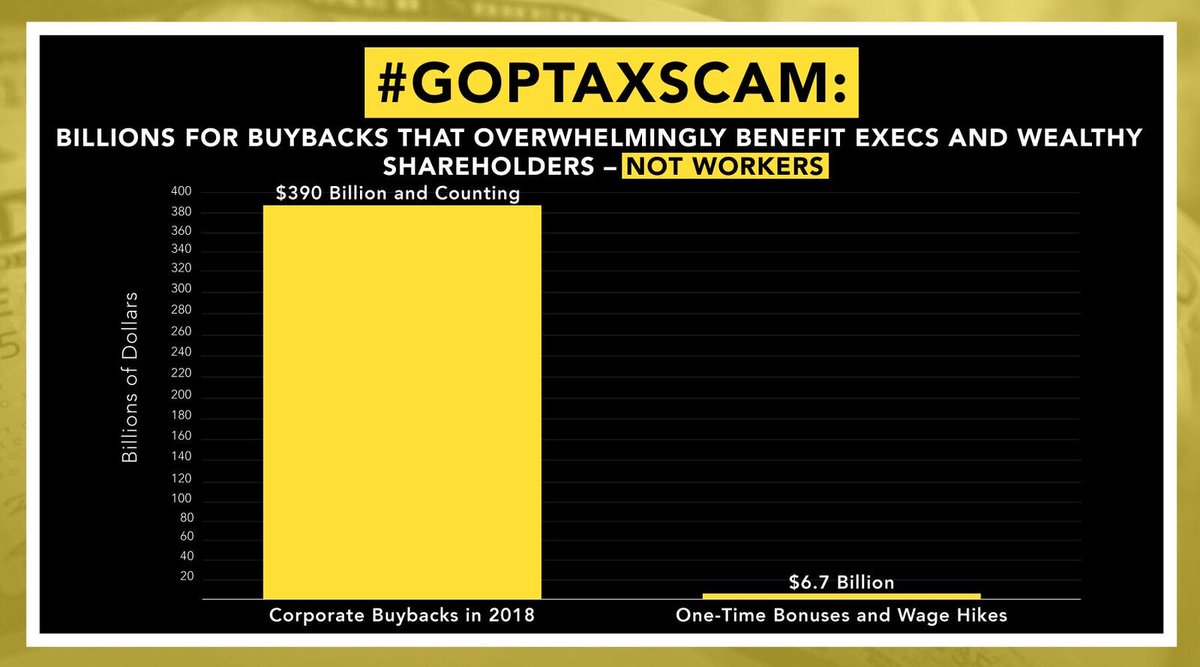 Is there data that show how many workers own shares of those companies in their 401Ks which is a direct benefit from a buyback? Instead of labeling the tax plan as a partisan "scam", at least do your homework.