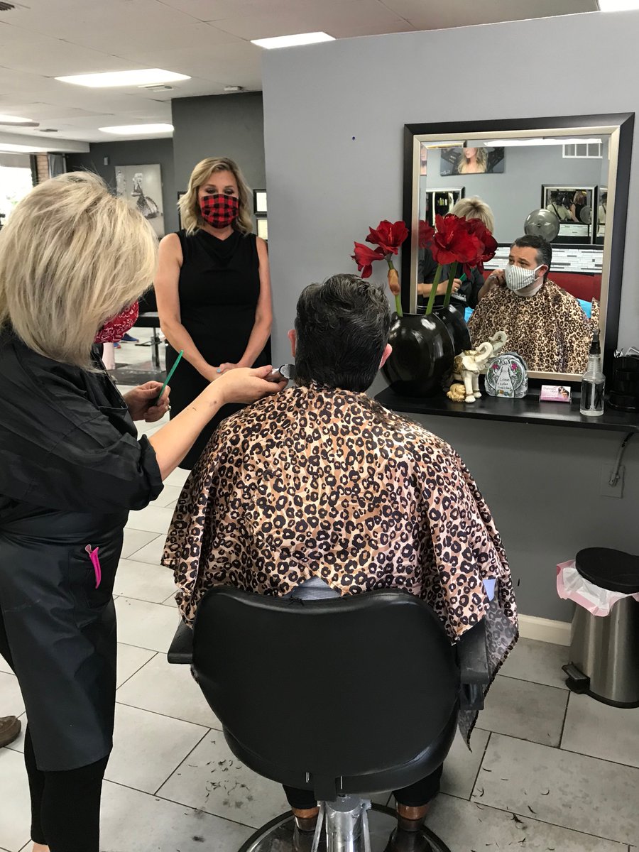 The cosplay soldiers showed up so Rafael could get a haircut in a leopard print cape?