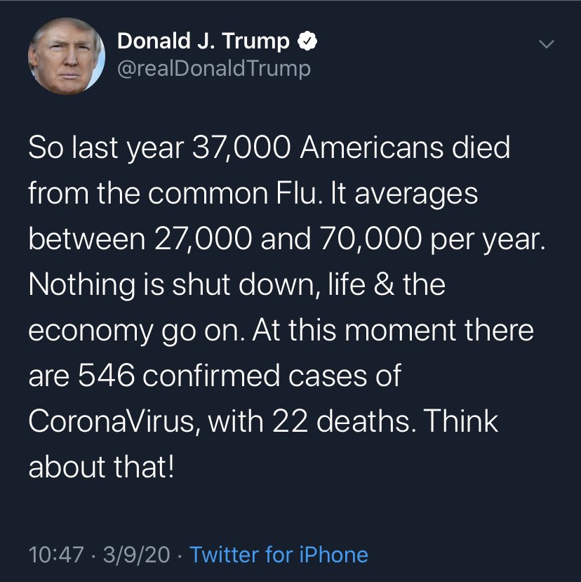 I’m gonna go with a higher authority on this one and say this is just the common flu and we should all buy stocks. You’re not disagreeing with your president now, are you?pic.twitter.com/Ut884rWMWM
