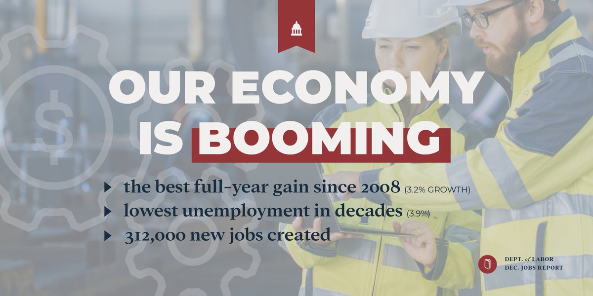 December Jobs Report: The Economy is BoomingOne full year since Republicans passed the Tax Cuts and Jobs Act, 2.6 million new jobs have been created, with a massive increase of 312,000 jobs in December.Thanks. Twitter will use this info to make your timeline better. UndoUndo -