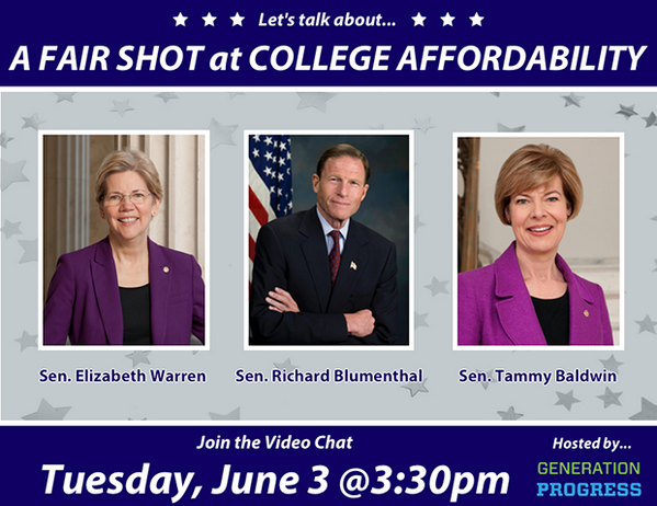 Join Tammy for a talk about the @SenateDems #FairShot plan on college affordability. #BankonStudents #HigherEdNotDebtpic.twitter.com/Q1gkPbKMXS