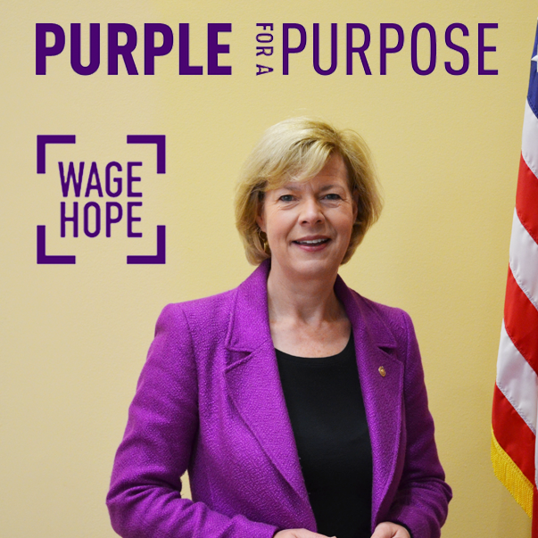 @SenatorBaldwin TY for your support and all that you do! You look great in your#PurpleForAPurpose! Let's#WageHope and raise awareness!Thanks. Twitter will use this to make your timeline better. UndoUndo