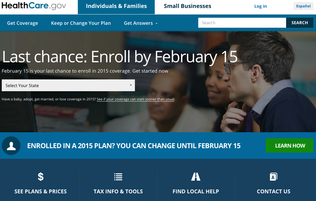 The deadline to enroll for 2015 coverage on @HealthCareGov is Feb 15 - Tomorrow! Sign up on http://Healthcare.gov pic.twitter.com/E6DXTQBTCE