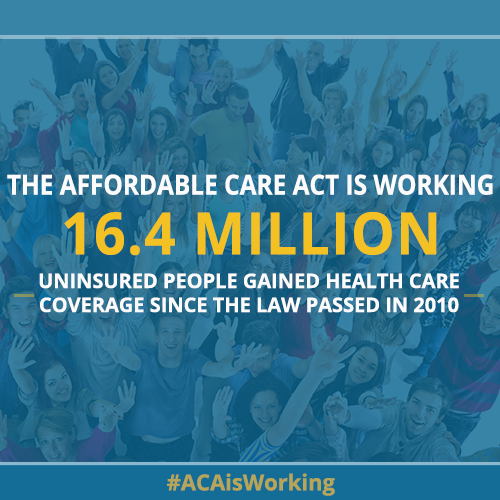 Proof that #ACAisWorking: 16.4 million uninsured Americans have gained coverage. The #ACAworks & it's changing lives.pic.twitter.com/tP2MZ227wW