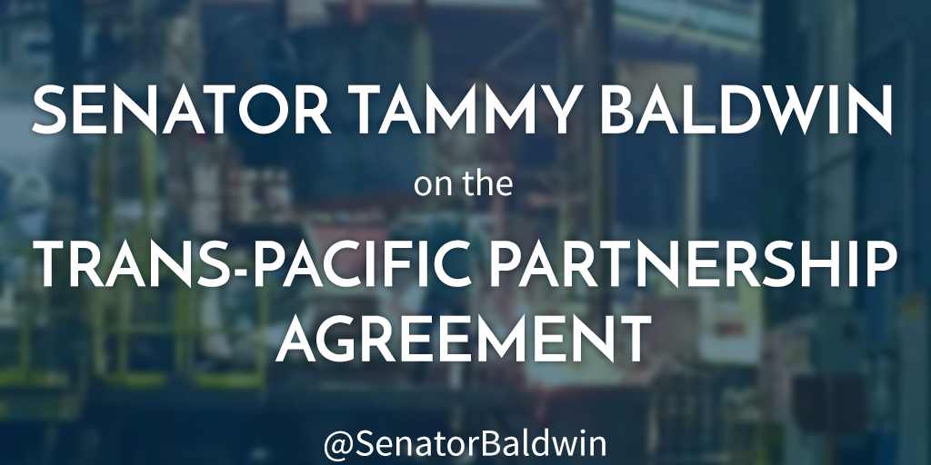 @SenatorBaldwin Thanks Tammy for a no vote on TPP from Wausau WI