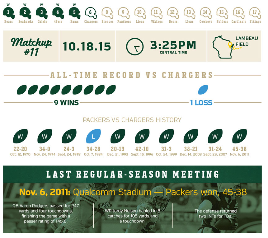 Incredible @packers #infographic on today's matchup at Lambeau. #SDvsGB #GoPackGo