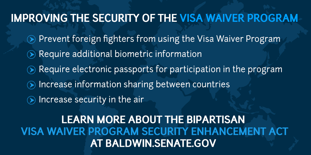 The bipartisan Visa Waiver Program Security Enhancement Act will bolster our security. http://www.baldwin.senate.gov/press-releases/us-senator-tammy-baldwin-joins-bipartisan-effort-to-strengthen-security-of-visa-waiver-program …pic.twitter.com/L6WSDglZzS