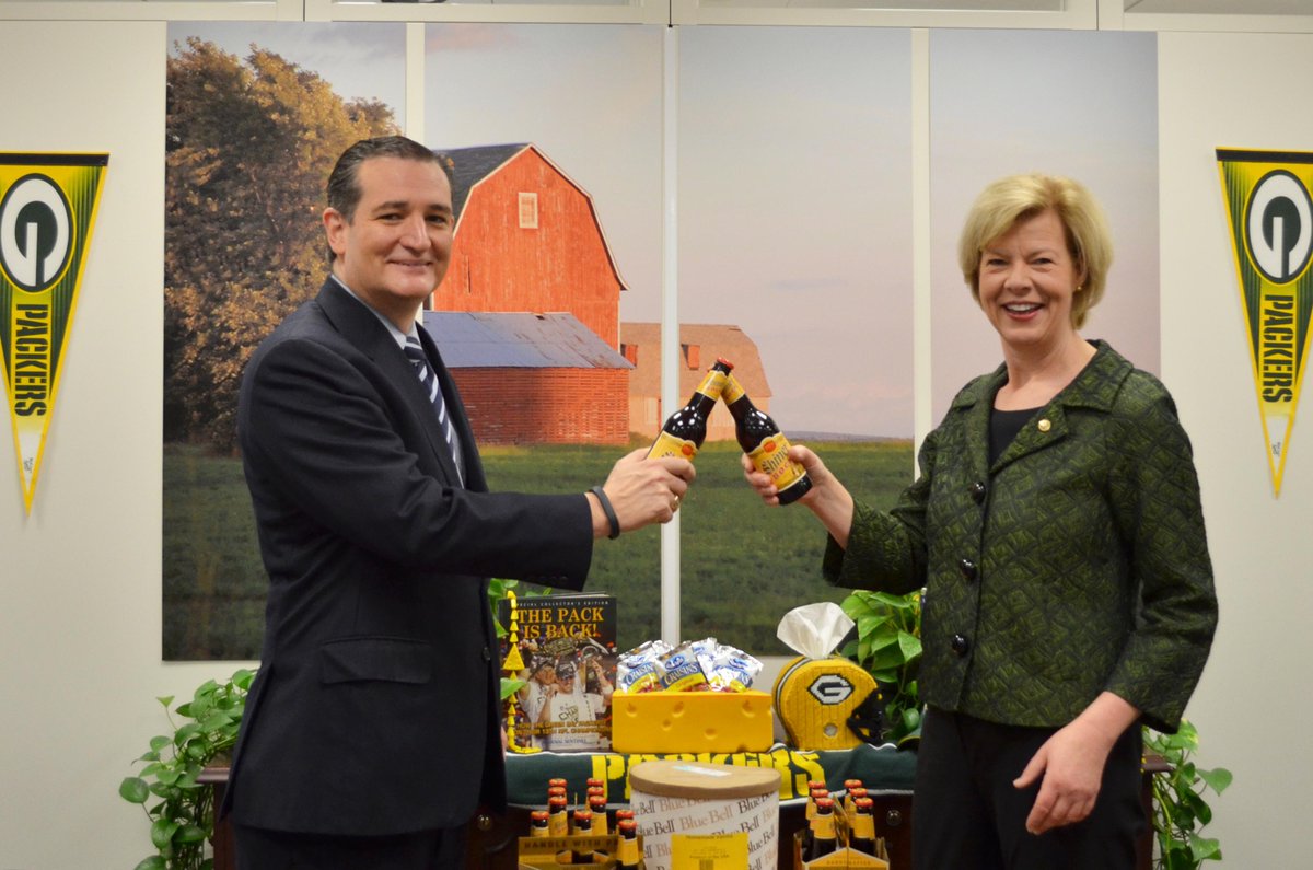 #NoHugs between Sen. Baldwin & @SenTedCruz today, but thx to the #Packers there was some #BlueBell & @ShinerBeer! pic.twitter.com/wM2Gh7xSlQ