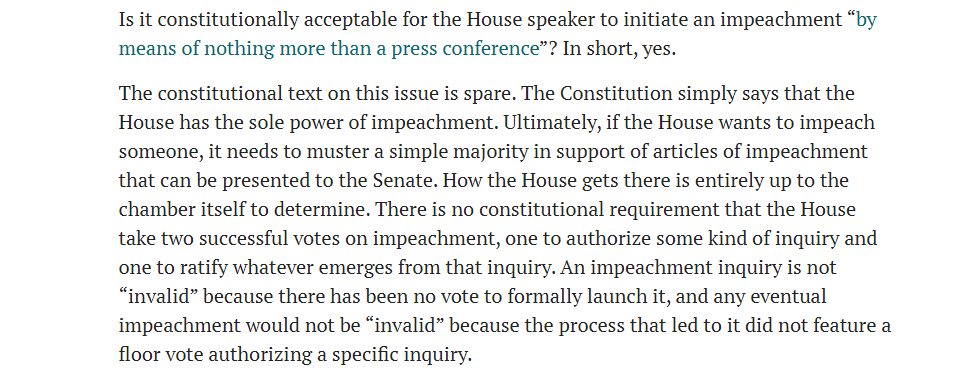 That's not how it works at all. A vote is not required for the impeachment process. Essentially, the House decides what its process is. https://www.lawfareblog.com/must-house-vote-authorize-impeachment-inquiry …pic.twitter.com/5t4qmBqDyC