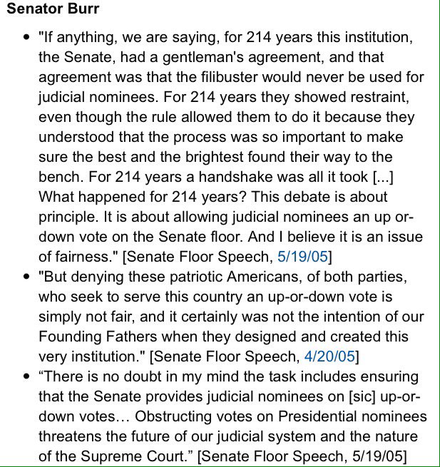 @Visitkarte@LeahPetersen@SenatorBurr also forgot his passionate pleas for Senate to vote on all judicial nominees. Unfit for office? -