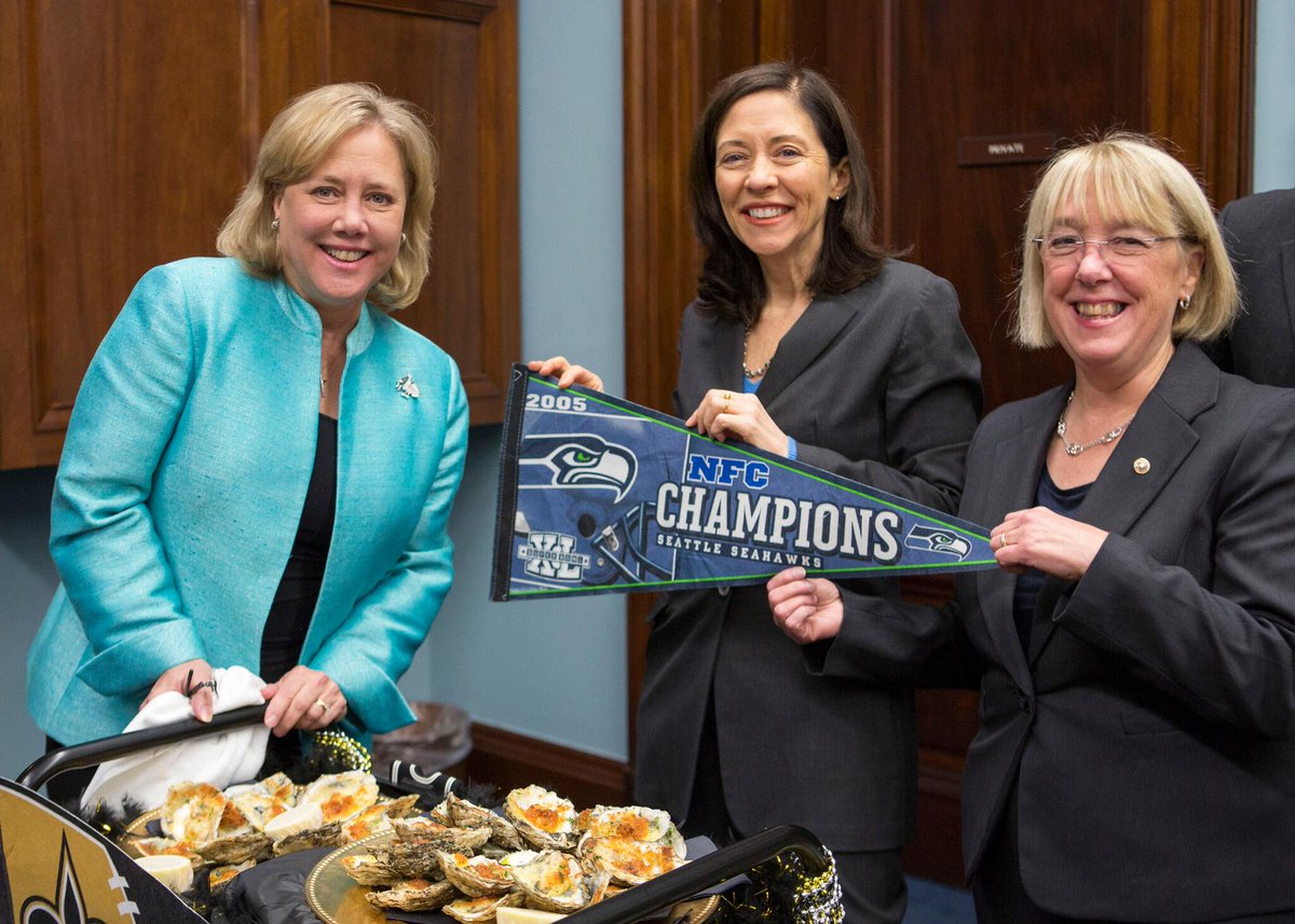 PIC: Cantwell, @PattyMurray claim winnings from @SenLandrieu after @Seahawks victory over @Saints #12thMan #GoHawkspic.twitter.com/qw9fbTRPUx
