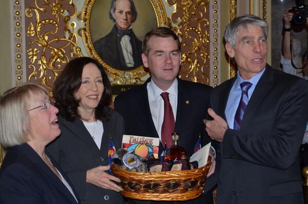 RT: @CantwellPress: Cantwell, @PattyMurray collect their winnings from @SenBennetCO, @MarkUdall after @Seahawks winpic.twitter.com/TjjXEbBsFL