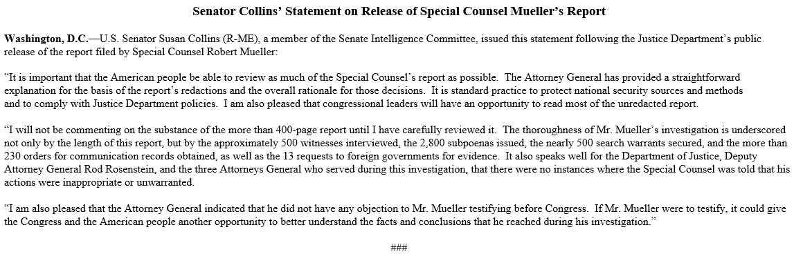 Are you sure you want to view these Tweets? Viewing Tweets won't unblock @SenatorCollins