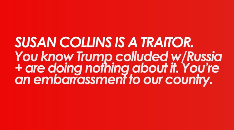 History will not look kindly on you Senator Collins. You are in a position to do something about our presidential crisis. Your silence makes you complicit.