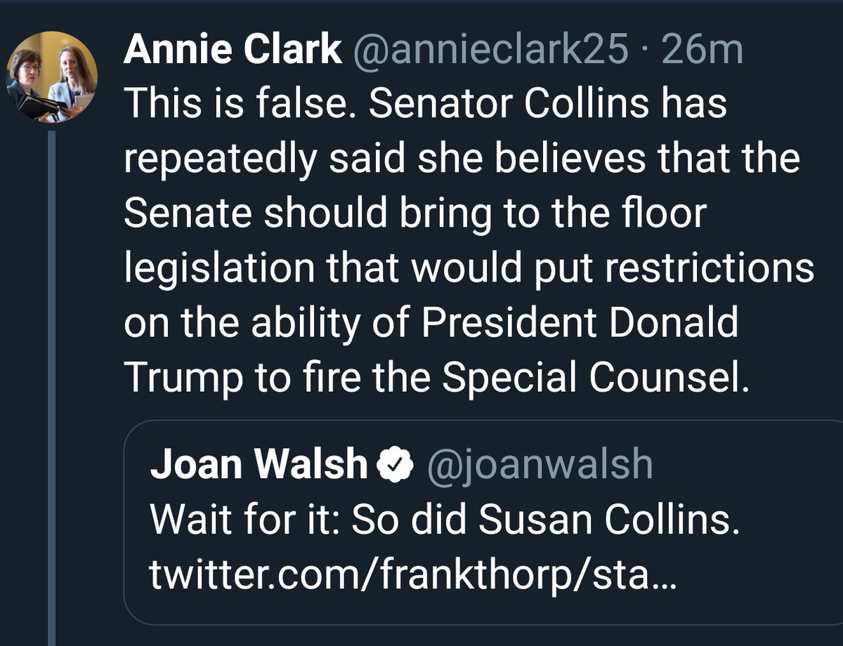 Don’t worry Senator Collins this will be the last time you get this opportunity.