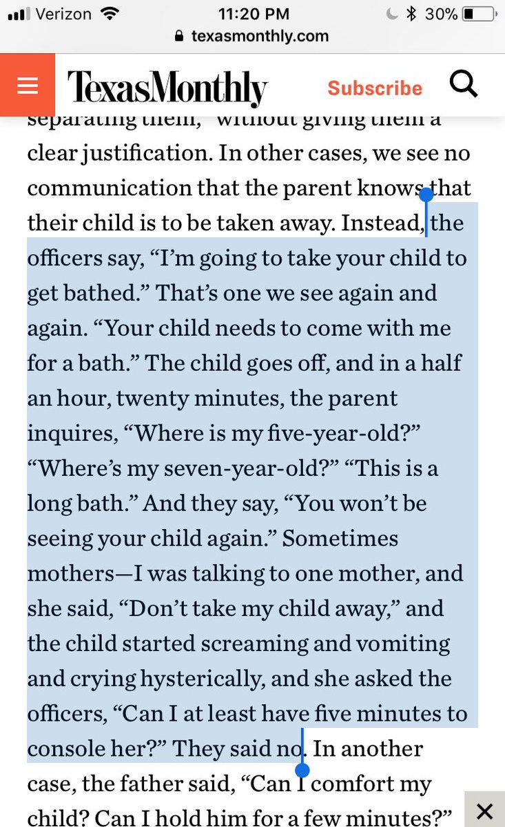 There is no documentation for these families your President is tearing apart. They are being told that they won’t be reunited. This is unconscionable.