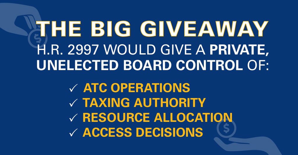 While you threaten to take federally managed air traffic services away from rural communities with HR2997 #NoPrivatizedATCpic.twitter.com/YckooxnT6m