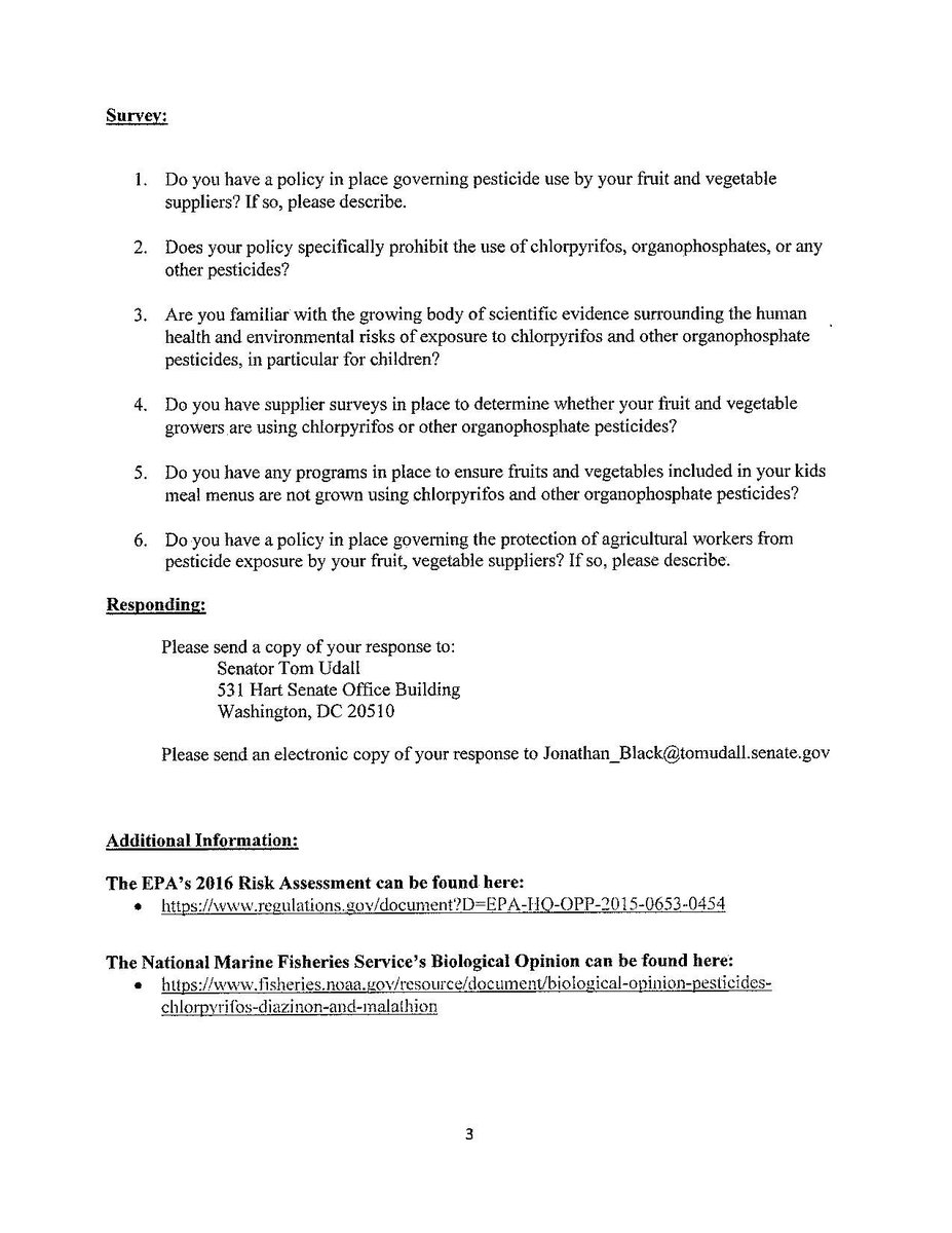#Chlorpyrifos residue is regularly found on fruits and vegetables at the grocery store, exposing children to a chemical linked to brain damage in kids. I’m asking American grocery stores and restaurants whether they source produce from farmers who use this dangerous pesticide.pic.twitter.com/OuBfGB2Vtr