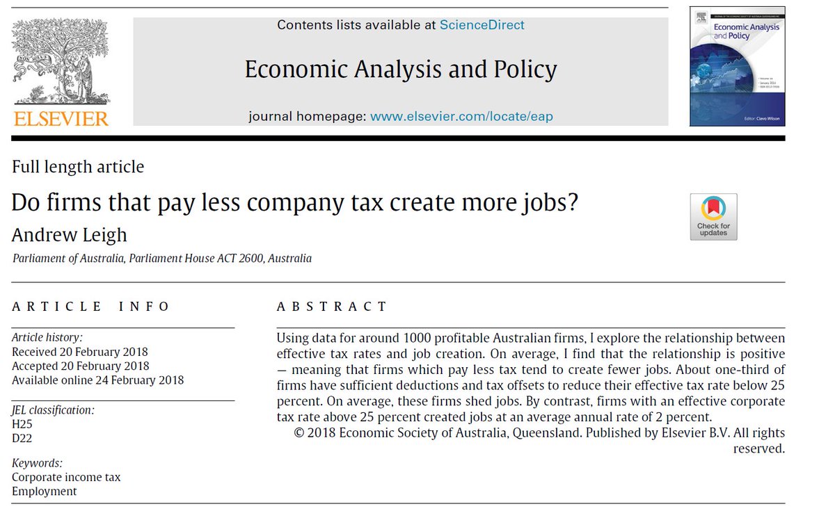 In new published research, I test the argument that when companies pay less tax, they create more jobs. The data show the opposite. Lower effective tax rate → fewer jobs created. Full research paper: https://authors.elsevier.com/a/1Wkau17JNudZIq …