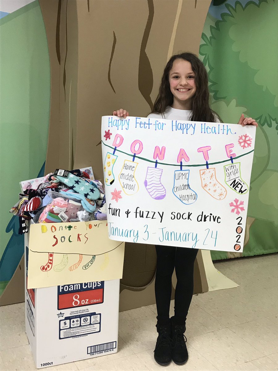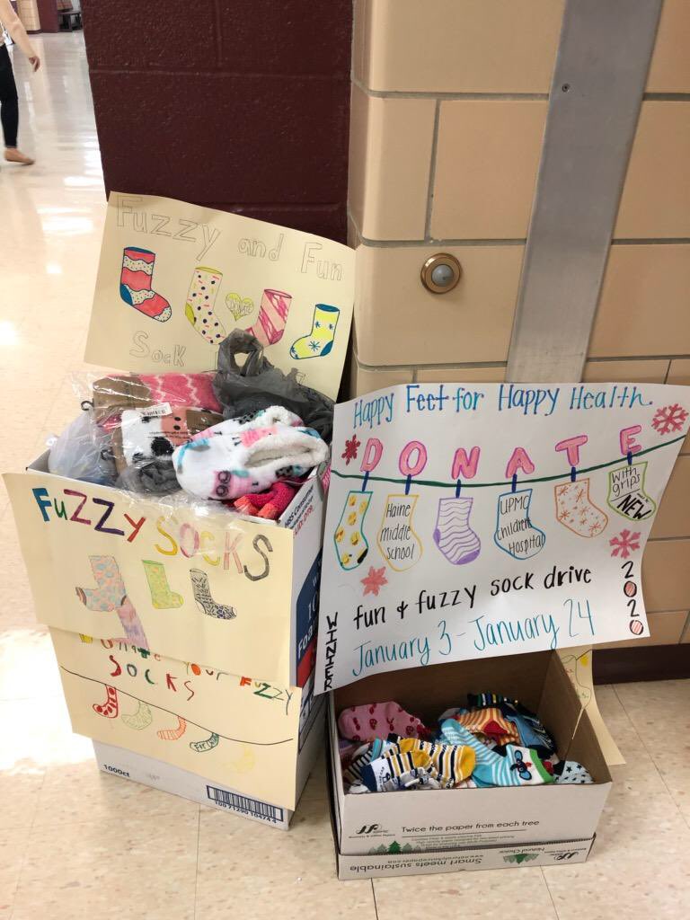 Proud of the Haine Middle School students and families for the abdunace of socks collected for Children’s Hospital.