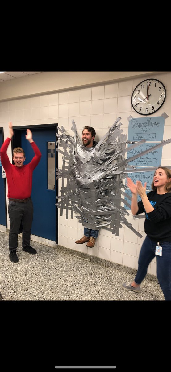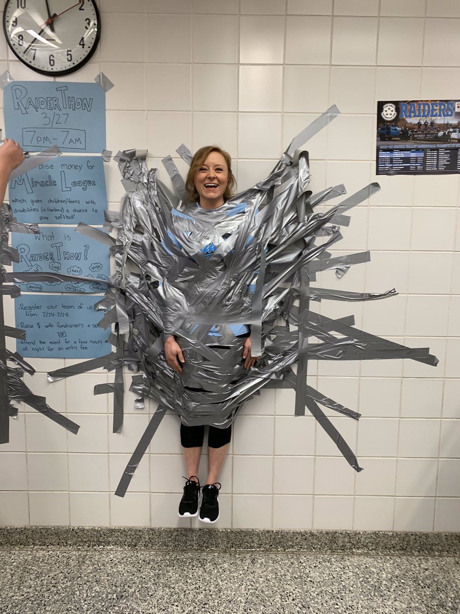 Students raise money for Miracle League and promote our upcoming RaiderThon. Tape a teacher to the wall!