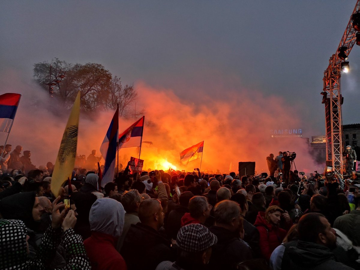 #Serbia. Flags are high up and flares are lighting the skies above. Serbian people are waking up.pic.twitter.com/9qL5dKfQlL