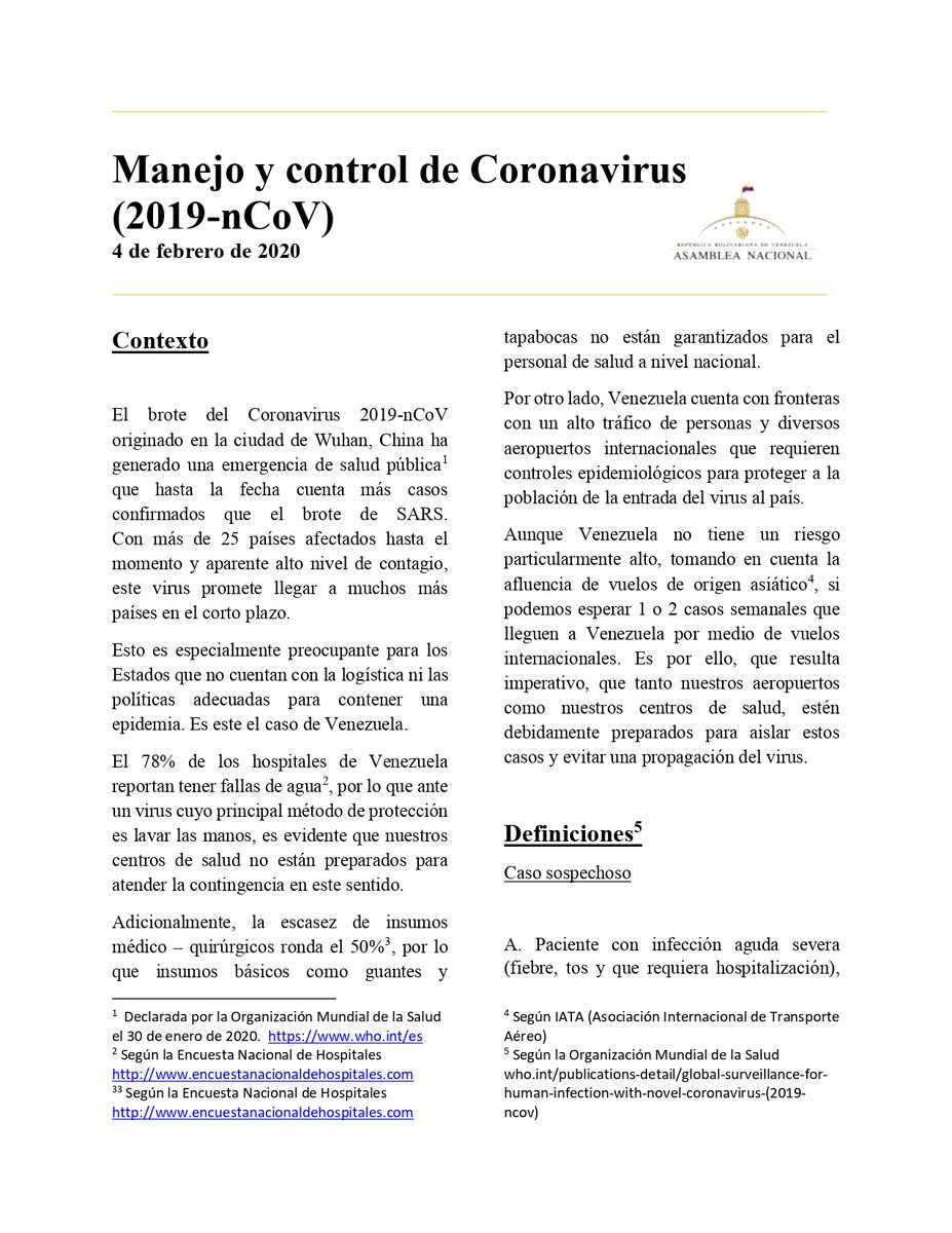 Asamblea Nacional emite documento para el control y manejo del Coronavirus. vía