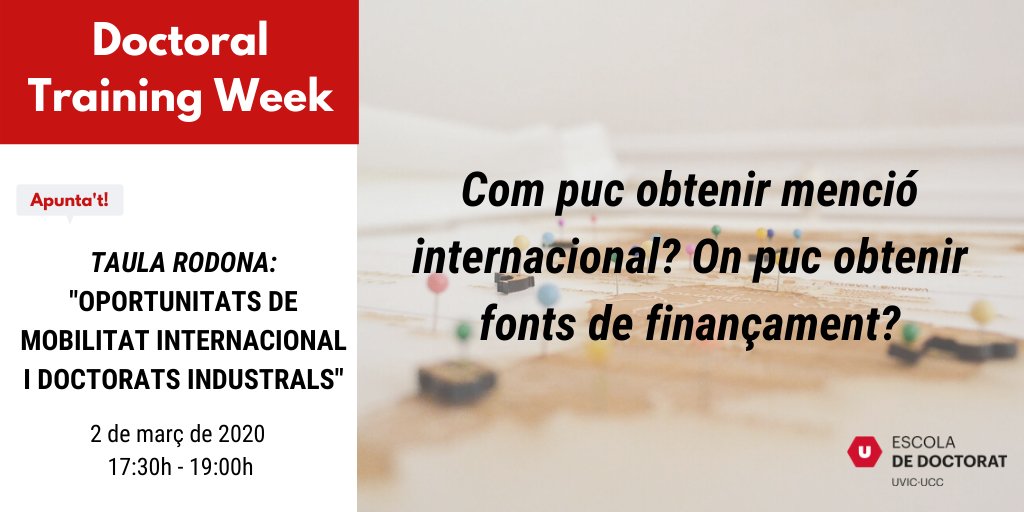 #DOCTORALTRAINING Estàs fent el doctorat o dirigint una tesi a la@uvic_ucc?
