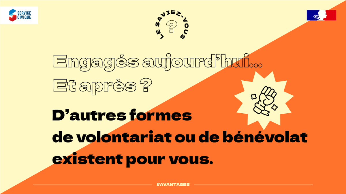 @ServiceCivique arrive à son terme et vous voulez continuer l’aventure ? Il existe d’autres formes de volontariat et de bénévolat dans lesquelles vous pouvez vous engager : Corps européen de solidarité,@ReserveCivique, etc. Pour en savoir plus