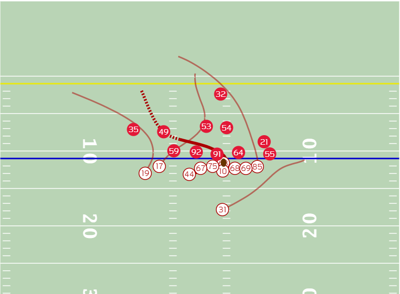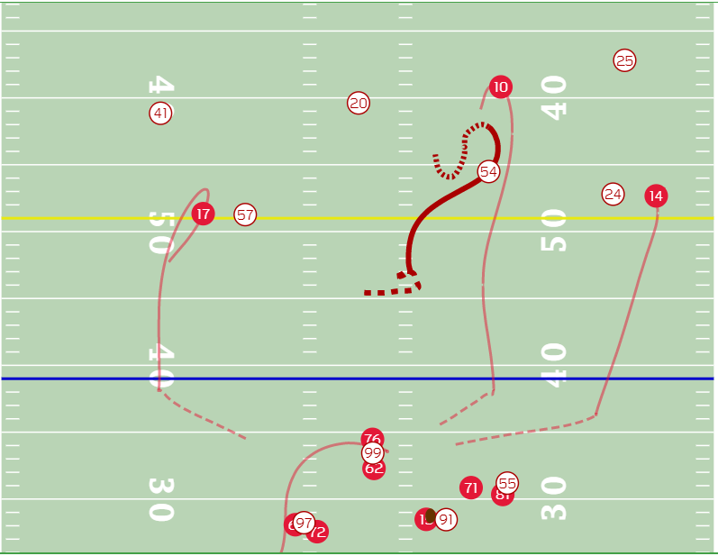 On the failed end around, Hardman would have been better off throwing the ball away and taking the ineligible man downfield penalty.