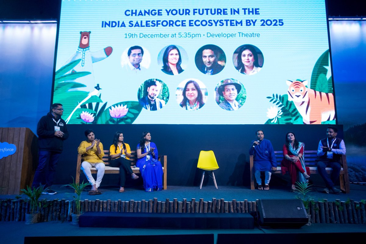 #TDXIndia19#tdxindia#TrailheaDX was hosting a panel on "Change Your Future in The#Salesforce Ecosystem by 2025" We had some amazing minds together for a candid conversation & no surprise it was standing-only room!#DigitalIndia#WIT#Skillspic.twitter.com/JsiGnE4nqM