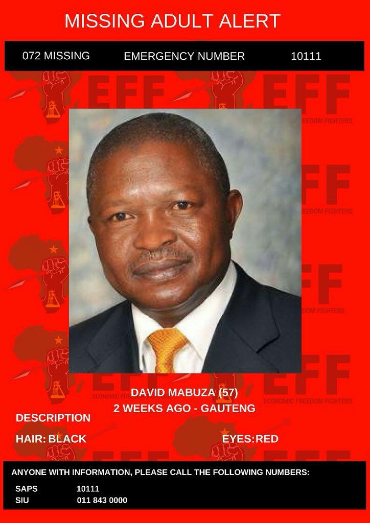 MISSING PERSON Name: David Dabede Mabuza Hair: Black & White Eye: Red Lips: Weed black BORN: 25th August 1960 Last Seen: 2 weeks ago in Gauteng Retweet For Awareness