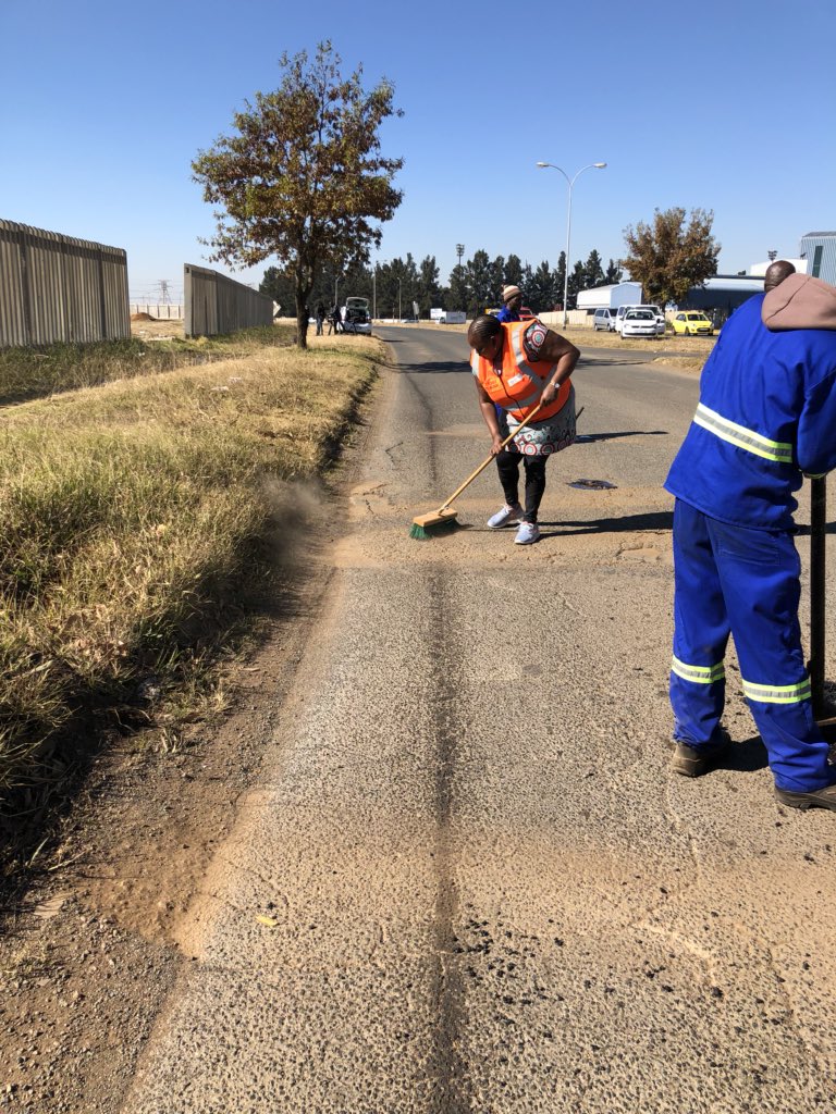 @GautengProvince):#NtirhisanoCleanup Community Safety MEC Sizakele Nkosi-Malobane preparing the tarring process@GP_CommSafety#WaronPotholespic.twitter.com/T6B7KDilwI