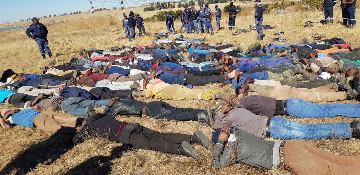 113 illegal miners arrested in and around Evander area in Mpumalanga after a police operation concentrating on searching of dangerous weapons & narcotic drugs. The suspects will appear in court on Monday.