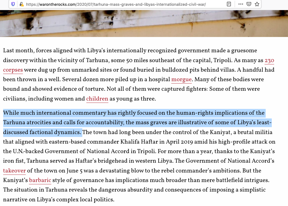 If parts of this article https://warontherocks.com/2020/07/tarhuna-mass-graves-and-libyas-internationalized-civil-war/ … on