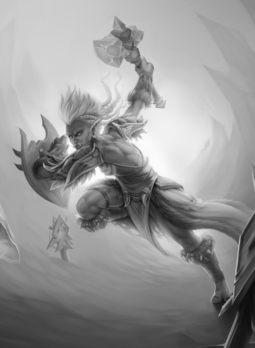 Fight like a girl I just finished this painting of a Night elf Priest vs. a Troll Shaman in B&W. Co-created with my ᑭatrons to celebrate my 5-year creator anniversary!pic.twitter.com/BV4S9jmeID