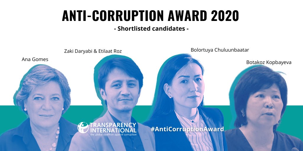 We are very honoured to announce the shortlisted candidates for the #AntiCorruptionAward 2020! ⬇️ > http://anticorru.pt/2rs  pic.twitter.com/bATpcEbUGX