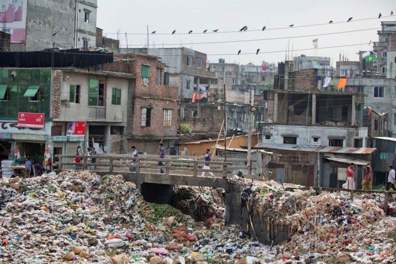 A canal in Mumbai. A river in Dhaka.