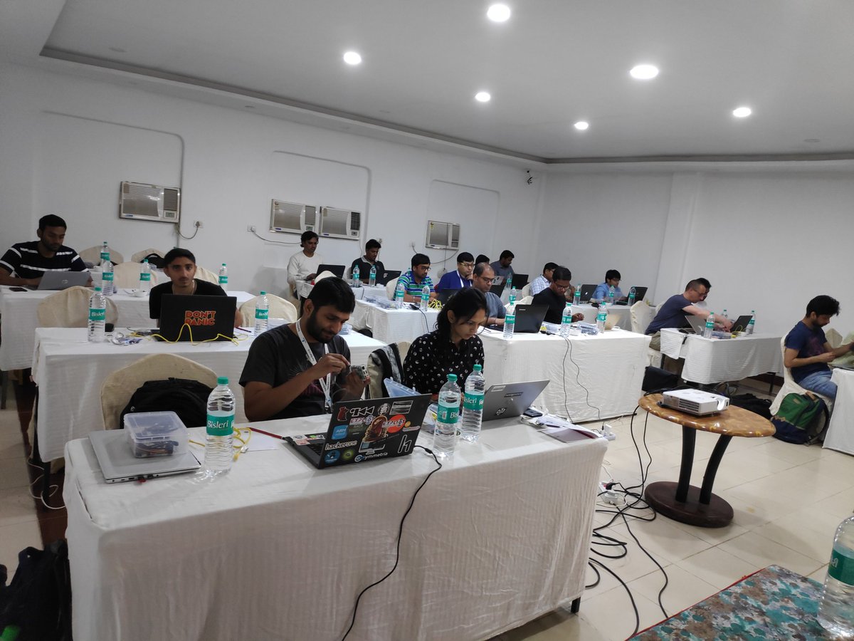 @aseemjakhar and@marunmagesh teaching#IoT hacking, using my plugins, at@hackinparis I will be there, in case you want to chat about how to add new plugins and our new hardware toolspic.twitter.com/GSWpFkcuI0
