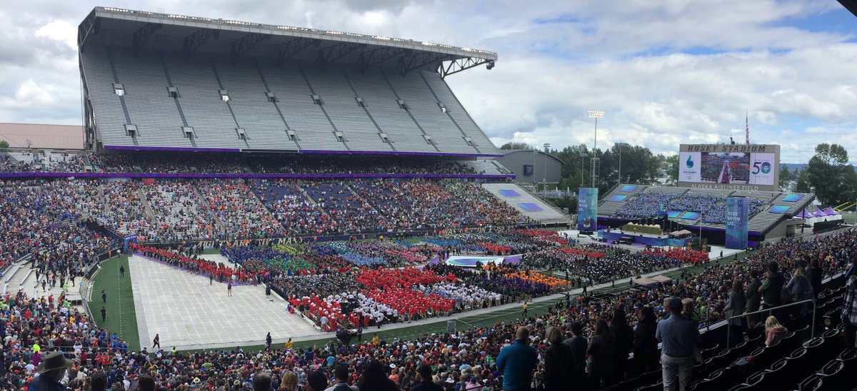 Huge roar as Washington athletes enter in the parade of athletes at opening ceremonies of the