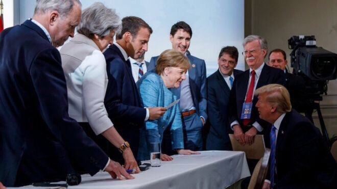 The G7 photo reminded me of this Saturday Evening Post cover. My Dad worked briefly for the magazine and he received a frame copy that hung in our house for years.pic.twitter.com/uZ825phWc0